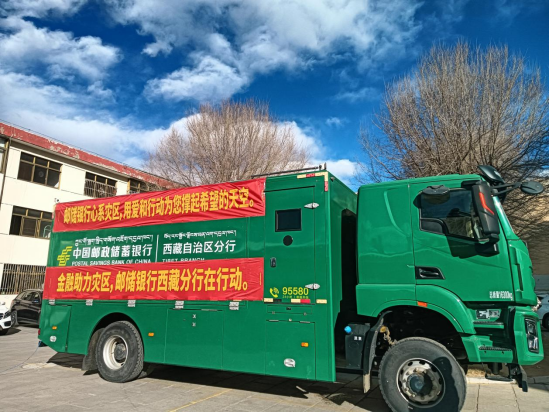 郵儲銀行西藏區(qū)分行金融流動服務(wù)車前往日喀則市定日縣,為震區(qū)百姓提供金融服務(wù)